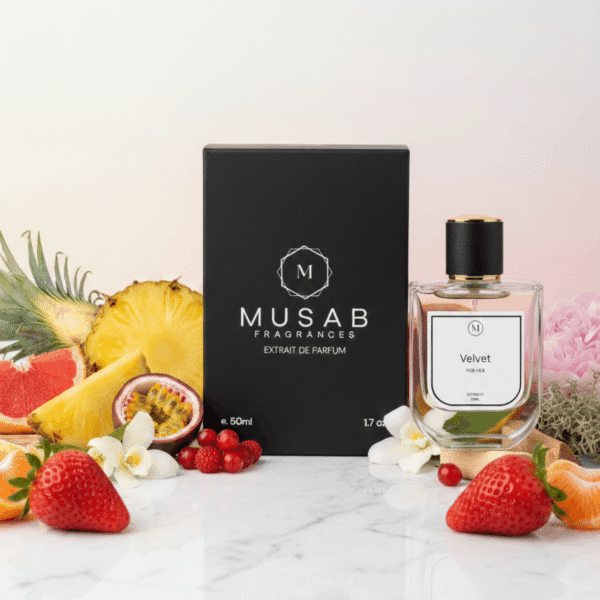 Velvet is a radiant floral-fruity fragrance crafted for the woman who owns her confidence. Bright, juicy fruits open the scent with an energetic sparkle, unfolding into a delicate floral heart before settling into a soft, sensual base.